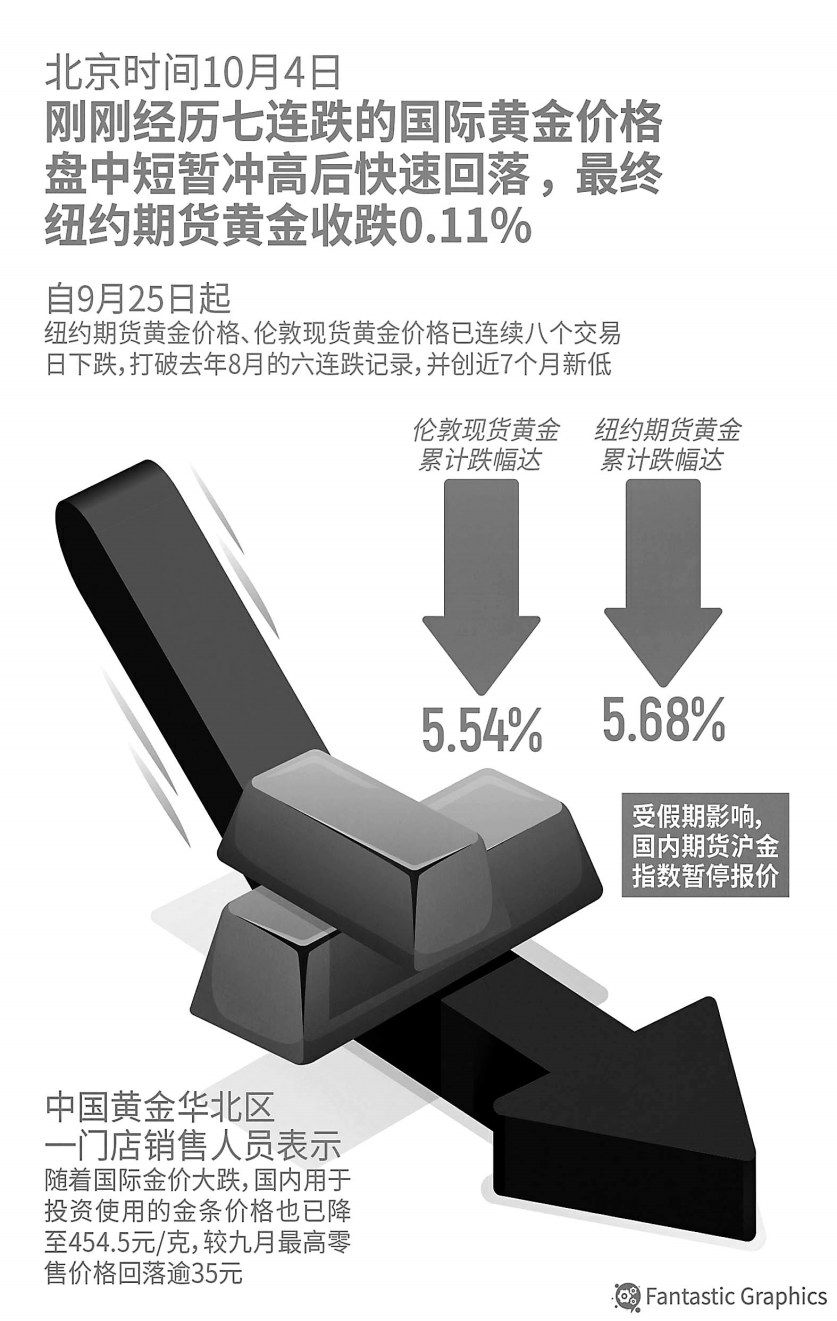 以伦敦金(现货黄金)为例,自9月25日起到10月5日,已承接9个来回日下落,不停刷新年内连跌新记录。10月3日一度下探至1812.98好意思元/盎司,创下近7个月新低,区间跌幅最高达6%。10月6日,伦敦金一度继续下探,但最终以1831.82好意思元/盎司收盘,当日高涨0.64%,终于规模了承接9天的下落势头。纽约商品来回所COMEX黄金期货价钱也一样遇到9连跌,从9月22日收盘价1944.90好意思元/盎司跌至10月5日的1831.80好意思元/盎司,9个来回日跌了5.82%,直至10月6日才终于止跌,收于1847好意思元/盎司。