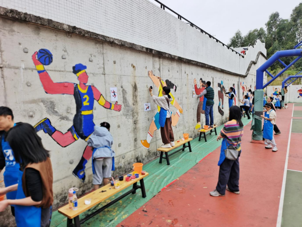 行径前期,毓正小学好意思术科组邻接学校的文化特色、学生审好意思本性及体育局势承载的精神内涵,尽心运筹帷幄了以“动感清醒东说念主物”为主题的行径决策。彩绘现实涵盖多种球类清醒,既与体育场的环境相呼应,也彰显了新时间学子茂密朝上的精神风貌。